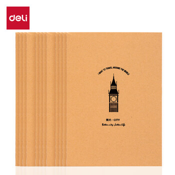得力(deli)12本A5/40张牛皮纸缝线软抄本办公记事本/ 文具笔记本子/ 草稿本/ 日记本开学必备FA54003