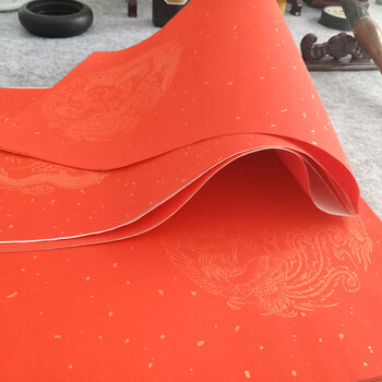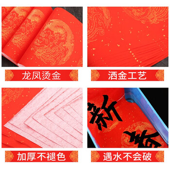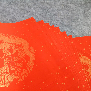 芬尚 万年红宣纸 五言对联春联 龙凤洒金 四尺三开春节手写对联138*22cm/一包五副含横批