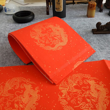 芬尚wnh1505万年红宣纸 七言对联春联 龙凤洒金 四尺三开春节手写对联红纸138*22cm一包含五副五横