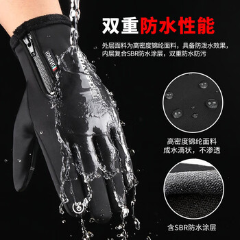永久(FOREVER)男女加绒拉链手套电动车摩托车手套防水防风滑雪骑行装备