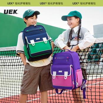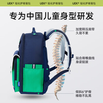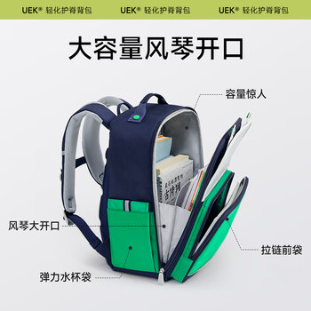 UEK小学生书包减负护脊书包男生儿童3-6年级背包学院风双肩包宝蓝色