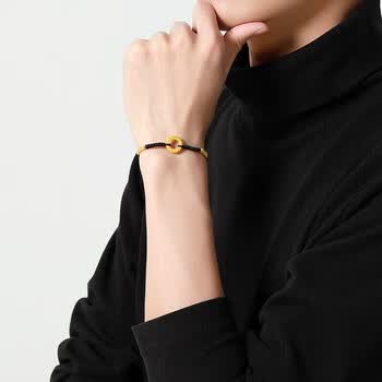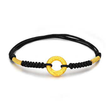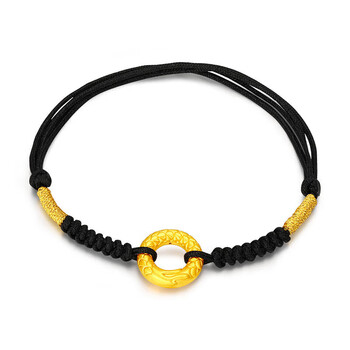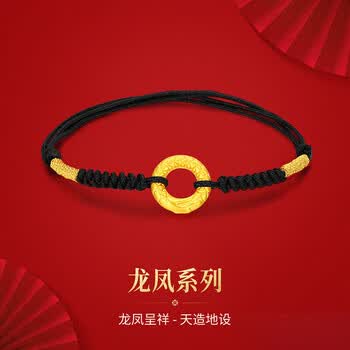 梦金园 黄金转运珠龙鳞凤尾足金平安扣3D硬金情侣手链定情礼物