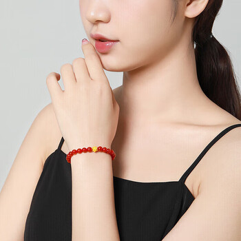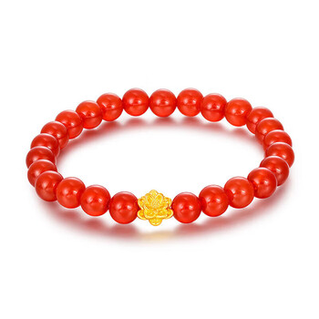 梦金园黄金转运珠足金莲花3D硬金路路通手链红玛瑙手串