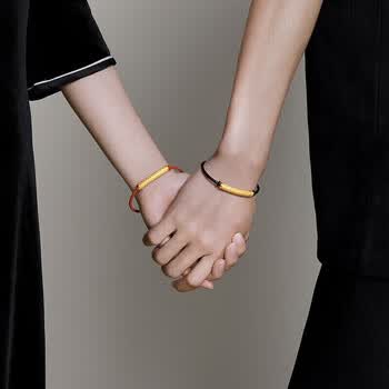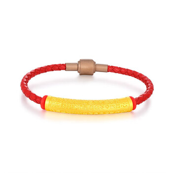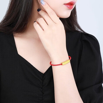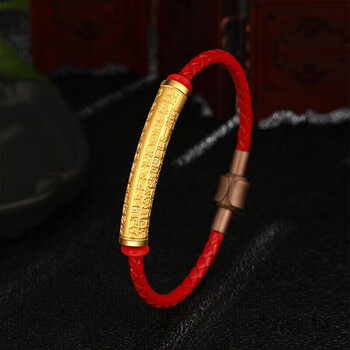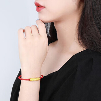 梦金园黄金转运珠3D硬金心经福管手链经文筒珠红绳手环