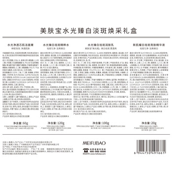 美肤宝水光净透芯肌洁面膏/美肤宝水光臻白祛斑精粹水/美肤宝水光臻白祛斑润肤乳/美肤宝新肌耀白祛斑亮肤精华液 |
