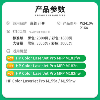 才进适用惠普hp216a W2410A硒鼓黑彩色套装M183fw M182n M182nw激光打印机粉盒M155a M155nw复印一体机墨粉盒
