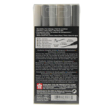 樱花(SAKURA)水彩笔软头画笔马克笔6色灰色系套装XBR-6专业绘画漫画服装设计【日本进口】美术写生