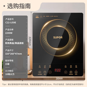 苏泊尔(SUPOR)C22-IJ59E 电磁炉【猛火爆炒】2200W大功率 十档火力 薄耐用黑晶面板 多功能电磁灶