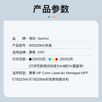 得印W9220MC黑色粉盒适用惠普HP Color LaserJet Managed MFP E78223dn粉盒 E78228dn彩色打印机墨盒