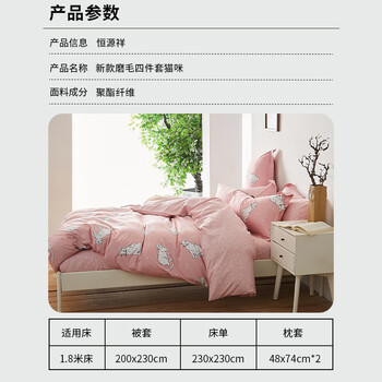 恒源祥四件套全涤磨毛加厚耐用超软亲肤床品套件秋冬(被套2*2.3m)猫咪
