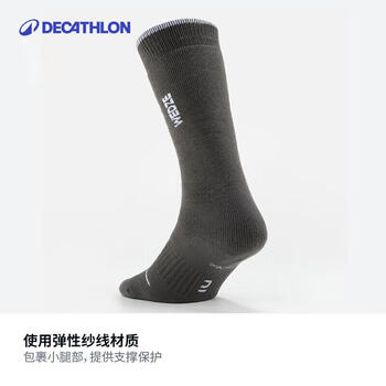 迪卡侬滑雪袜男女长筒高筒毛巾底专业长袜—灰色23~26码-4576023