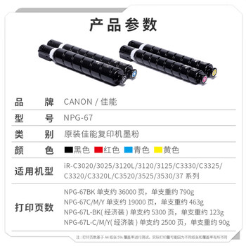 佳能原装NPG-67L经济装Y黄色碳粉3222/3125/3226打印机耗材3120/3130复合机墨粉盒