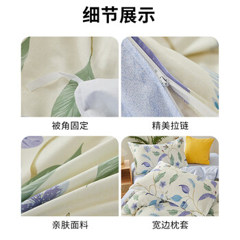 恒源祥全棉四件套抗菌印花超软亲肤床品套件(被套2*2.3m)绽放如莲