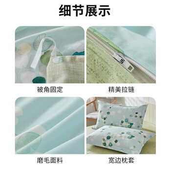 全棉抗菌印花四件套(好运莲莲·蓝)(被套2*2.3m)