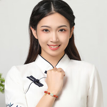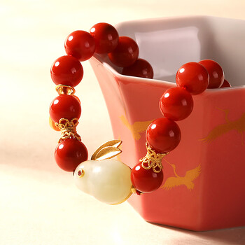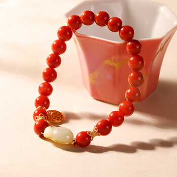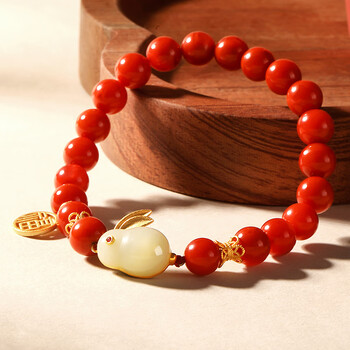 豆蔻时光8mm南红玛瑙手串福禄和田玉兔手链古法银圆福吊坠女款
