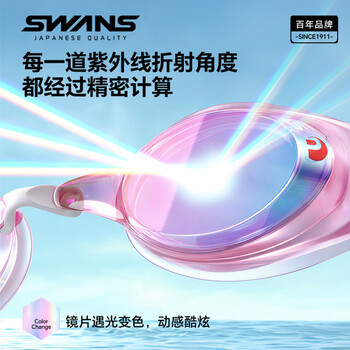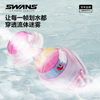 SWANS泳镜日本进口男女防水防雾高清专业竞速镀膜游泳眼镜游泳装备粉白