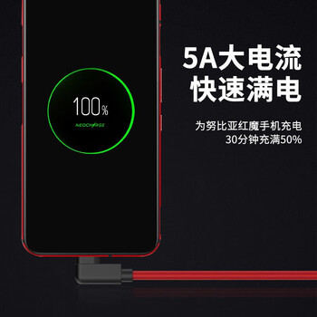轩邑 适用努比亚红魔数据线弯头PD120W/80W超级快充充电线10PRO/9SPro/8s/7/6/6r/5g 双头Type-C 1.5m