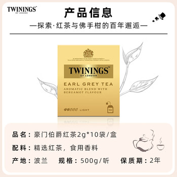 川宁(TWININGS)波兰进口 茶叶红茶 英国川宁豪门伯爵红茶10袋20g*1
