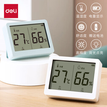 得力室内温湿度表 LCD\电子温湿度计老人儿童礼物生日礼品带背光功能 婴儿房办公用品 蓝色LE501-TQ
