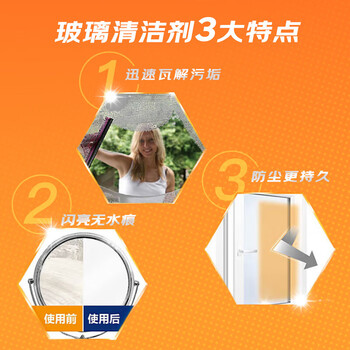 威猛先生(Mr Muscle)玻璃清洁剂500g+420g*2袋 浴室车窗清洁剂 去污防尘持久洁净