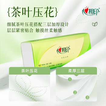 心相印抽纸 餐巾纸茶语丝享3层150抽*24包加大M码 纸巾 卫生纸整箱