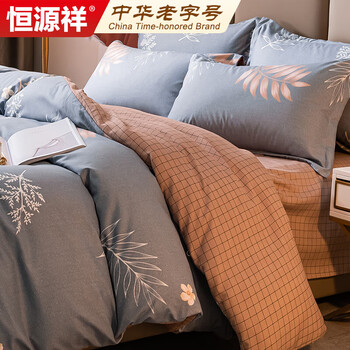 恒源祥100%纯棉四件套床上用品全棉床单双人被套220*240cm1.8/2.0米床