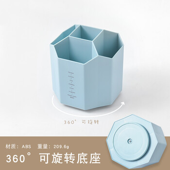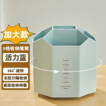 三年二班5格创意个性旋转笔筒办公桌笔筒收纳盒多功能笔桶大容量办公桌面收纳盒储物盒蓝色可旋转款