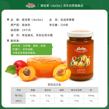 DARBO 优选杏果酱250g/瓶 80%果肉含量早餐下午茶面包酸奶 奥地利进口