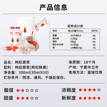 早康宁夏中宁枸杞原浆300ml鲜果枸杞现榨送父母补礼物肾低GI原浆