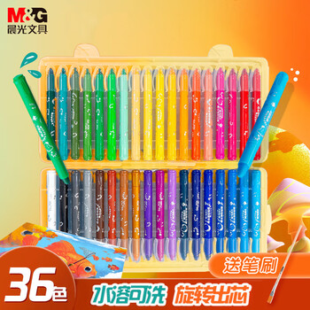 晨光(M&G)文具36色水溶性油画棒儿童可水洗不脏手彩绘棒大容量炫彩棒小狐希里蜡笔生日开学礼物