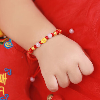 蒂蔻(Tico)如意福锁包足金黄金转运珠手链宝宝款古法金珠婴儿手链儿童金饰