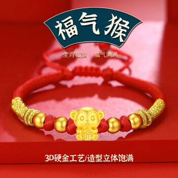 蒂蔻(Tico)生日礼物本命年十二生肖猴足金古法金珠黄金转运珠手链3D硬金猴