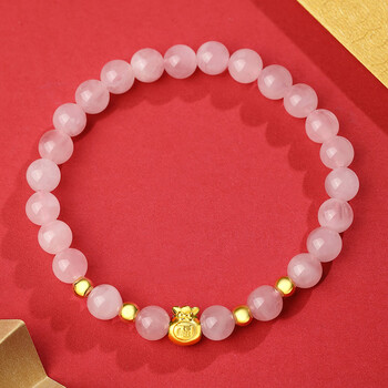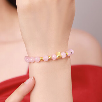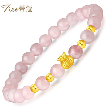 蒂蔻(Tico)代代有福福袋足金黄金转运珠手链女3D硬金珠粉水晶手串生日礼物