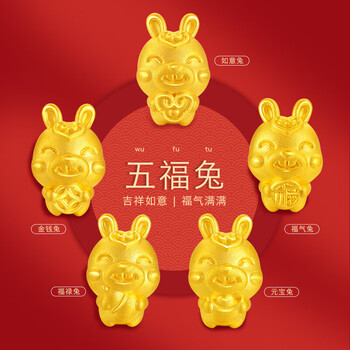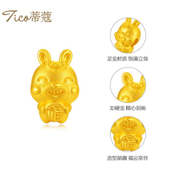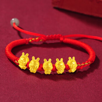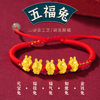 蒂蔻(Tico)兔年足金五福兔黄金转运珠手链女3D硬金兔生肖红绳本命年礼物生日