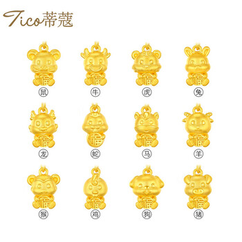 蒂蔻(Tico)生日礼物本命年足金十二生肖黄金吊坠蛇项链3D硬金蛇生肖挂坠
