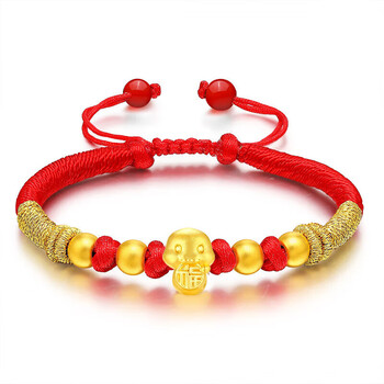 蒂蔻(Tico)十二生肖蛇足金古法金珠黄金转运珠手链3D硬金蛇生日礼物本命年
