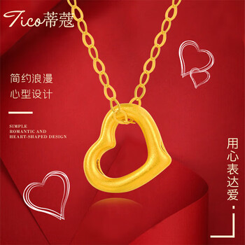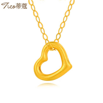 蒂蔻(Tico)足金浪漫爱心形黄金吊坠女3D硬桃心配18K金项链女朋友生日礼物