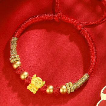 蒂蔻(Tico)生日礼物本命年十二生肖牛足金古法金珠黄金转运珠手链3D硬金牛