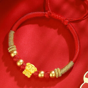 蒂蔻(Tico)生日礼物本命年十二生肖猪足金古法金珠黄金转运珠手链3D硬金猪