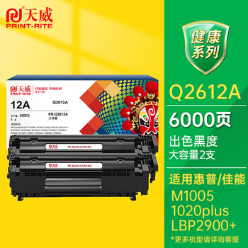 天威 q2612a硒鼓 大容量2支装 适用惠普1020硒鼓m1005 hp 1020plus q2612a 1018 佳能LBP2900+打印机墨盒 12a