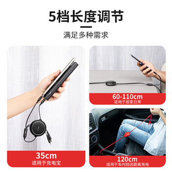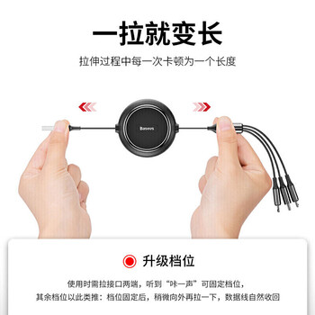 倍思 金环一拖三伸缩数据线USB For M+L+T 3.5A 1.2m 黑色× 1、保修卡 × 1