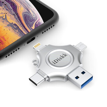 iDiskk128GB MFi认证四合一手机U盘type-c电脑直连存储大容量适用华为安卓苹果15iPhone16照片备份优盘