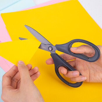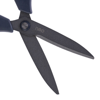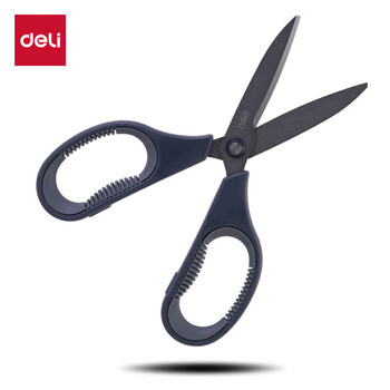 得力(deli)特氟龙防粘防锈办公居家剪刀 弧形剪片省力剪子 灰色77754