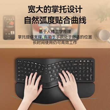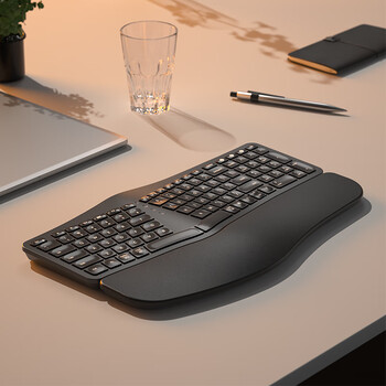 B.O.W航世 HD315B 双模无线蓝牙充电键盘 办公通用键盘 人体工学键盘 带手托软垫 背光键盘 黑色