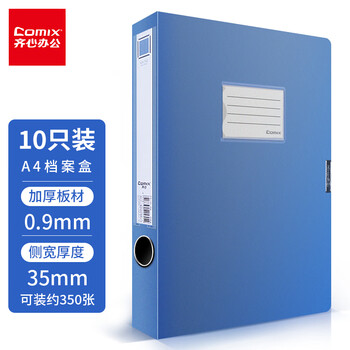 齐心(COMIX)10个装 35mm牢固耐用粘扣档案盒/A4文件盒/资料盒 蓝色EA1007-10