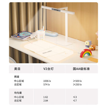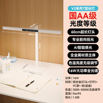 雷士(NVC)国AA级护眼台灯前投光设计学生学习阅读专用全光谱防蓝光无频闪V2