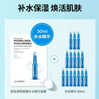 原辰安瓶补水面膜玻尿酸精华补水保湿滋润肌肤男女士护肤韩国10片/盒