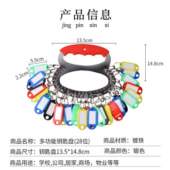 TaTanice 创意礼品钥匙盘创意钥匙环圈可标记钥匙扣宿舍钥匙管理收纳用品手提金属钥匙管理牌18位带标记牌