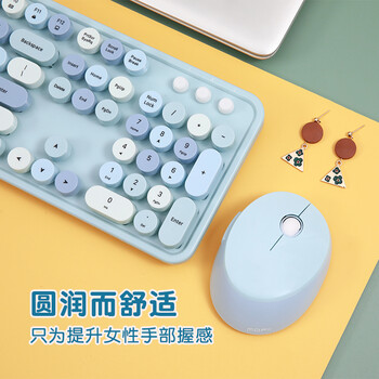 摩天手(Mofii) sweet无线复古朋克键鼠套装 办公键鼠套装 鼠标 电脑键盘 笔记本键盘 蓝色混彩