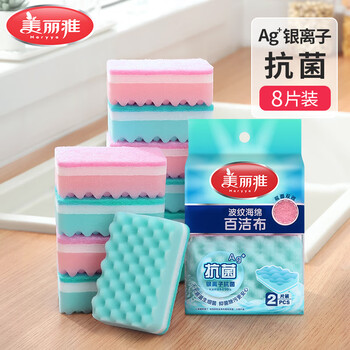 美丽雅洗碗海绵8片抗菌百洁布海绵擦洗碗抹布双面吸水厨房刷碗去油污